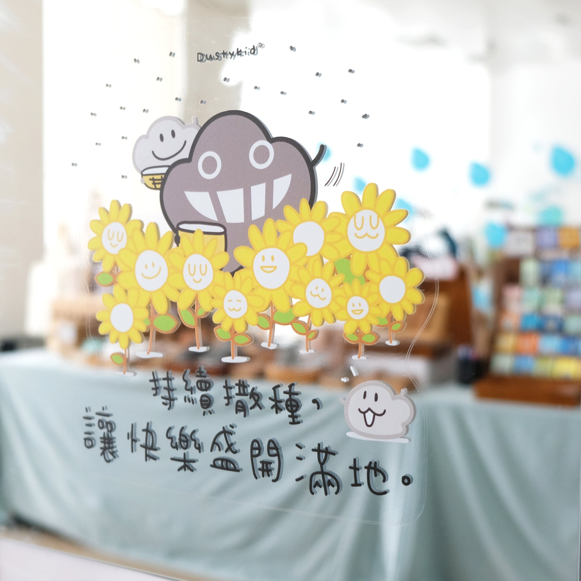塵裝飾玻璃靜電貼《讓快樂盛開滿地》